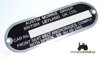 Austin Mini tabliczka znamionowa tłoczona znakowanie