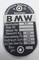 ( ilość produktów: 74 )BMW R23 tabliczka znamionowa