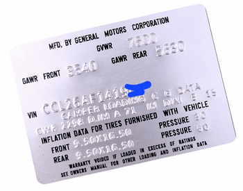 Chevrolet C10 C-10 tabliczka znamionowa wytłoczony VIN