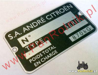 Citroen 2CV tabliczka znamionowa tłoczona wytłaczana