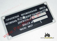 Gaz Wołga 21 tabliczka znamionowa nr.2