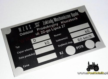 Kluczbork przyczepa rolnicza/ciężarowa tabliczka znamionowa