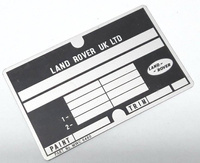 Land Rover tabliczka znamionowa