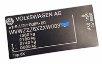 Volkswagen LUPO typ 6X naklejka znamionowa + VIN