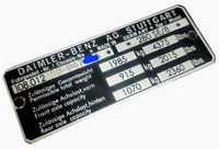 Mercedes 230 W 143 (Daimler Benz) tabliczka znamionowa aluminiowa