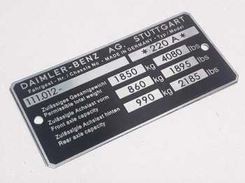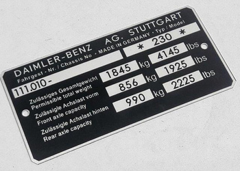 ( ilość produktów: 116 )Mercedes W111.010 typ 230 tabliczka znamionowa