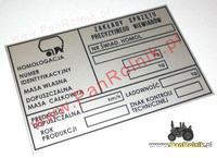 Niewiadów Tramp T-450 tabliczka znamionowa