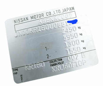 Nissan Patrol i inne tabliczka tłoczona Nissan Motor Co.LTD Japan