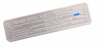Opel Kadett tabliczka znamionowa + znakowanie