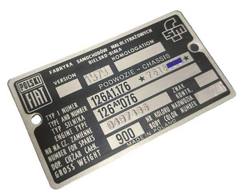 Fiat 126 tabliczka znamionowa tłoczona