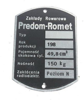 Romet Komar 3 2352- tabliczka znamionowa