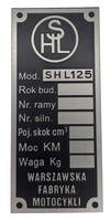 SHL 125 M04 tabliczka znamionowa (wersja warszawska)
