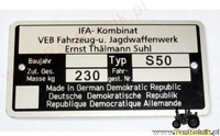 Simson S50B S 50 B S50B tabiczka znamionowa