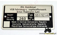 Simson S 51/1E-H tabiczka znamionowa