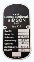 Simson SR 4-2/1 tabliczka znamionowa