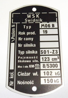 WSK M06B3 Świdnik tabliczka znamionowa (silnik S01-Z3, nr.fabr)