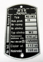 WSK M21W2 (silnik W2) tabliczka znamionowa (około 1977)