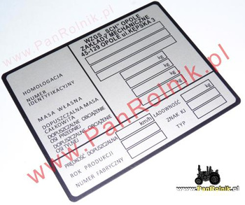 ( ilość produktów: 4 )WZGS (przyczepa) tabliczka znamionowa