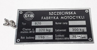 Junak B20 tabliczka znamionowa