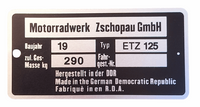 MZ ETZ 125 waga 290 kg tabliczka znamionowa