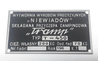 Niewiadów Tramp T-450 tabliczka znamionowa