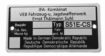 ( ilość produktów: 58 )Simson S51B2-4/1-CS tabliczka znamionowa