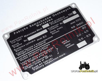 ( ilość produktów: 49 )FSO Warszawa 201 (1962-1964) tabliczka znamionowa