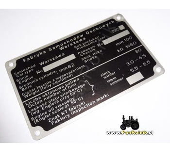 ( ilość produktów: 49 )Warszawa FSO M20 tabliczka znamionowa