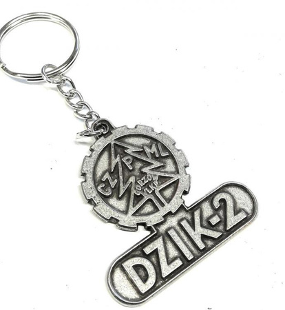 Metalowy breloczek na zawiszce z logo Dzik-2 CZPLM Gorzów Wlkp. Znaczek jednostronny, wymiar 4,3 cm na 4,5 cm. Fajny gadżet dla posiadaczy tego typu traktorka rolniczego.