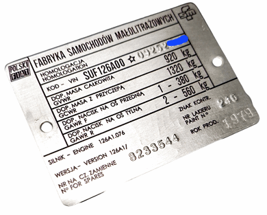 Fiat 126p 1979 rok tabliczka znamionowa tłoczona tłoczony VIN