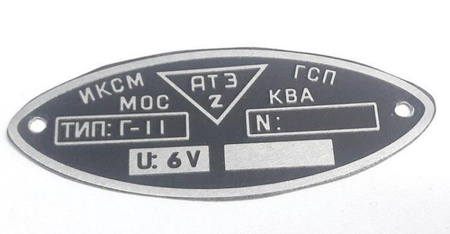 Tabliczka metalowa na prądnicę M72, typ G-11 6 C, Kolor tła jasny.
