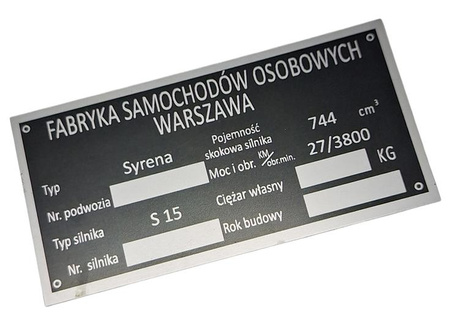 Syrena FSO 100 101 102 tabliczka znamionowa